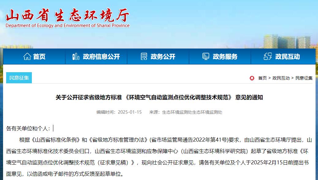 監(jiān)測數(shù)據(jù)是反映各地空氣質(zhì)量狀況和考核地方政府治理大氣污染成效的主要依據(jù)。為確保山西省環(huán)境空氣質(zhì)量監(jiān)測點(diǎn)位能夠科學(xué)、客觀、準(zhǔn)確反映當(dāng)?shù)丨h(huán)境質(zhì)量狀況,同時(shí)考慮監(jiān)測點(diǎn)位延續(xù)性、前瞻性。由山西省生態(tài)環(huán)境廳提出,山西省生態(tài)環(huán)境標(biāo)準(zhǔn)化技術(shù)委員會歸口,山西省生態(tài)環(huán)境監(jiān)測和應(yīng)急保障中心(山西省生態(tài)環(huán)境科學(xué)研究院)起草了省級地方標(biāo)準(zhǔn)《環(huán)境空氣自動監(jiān)測點(diǎn)位優(yōu)化調(diào)整技術(shù)規(guī)范(征求意見稿)》。